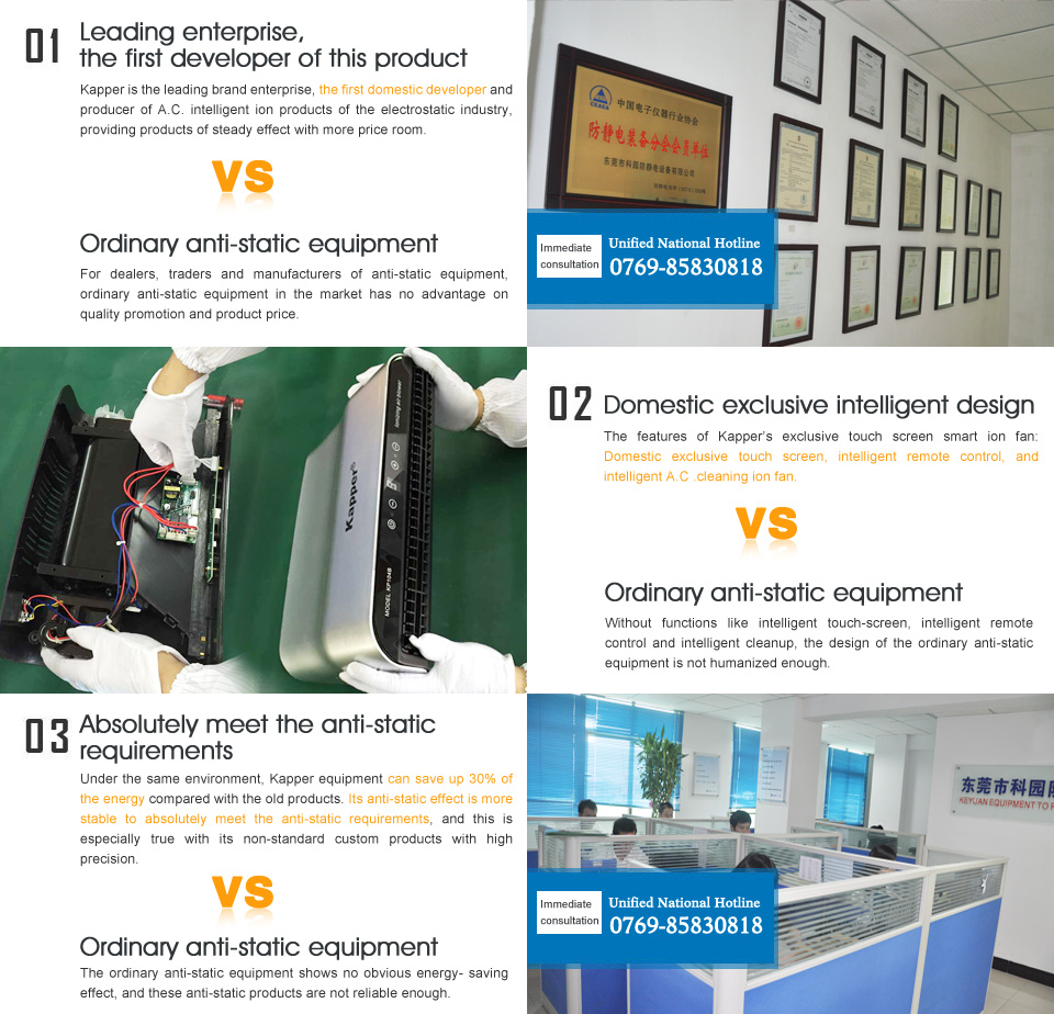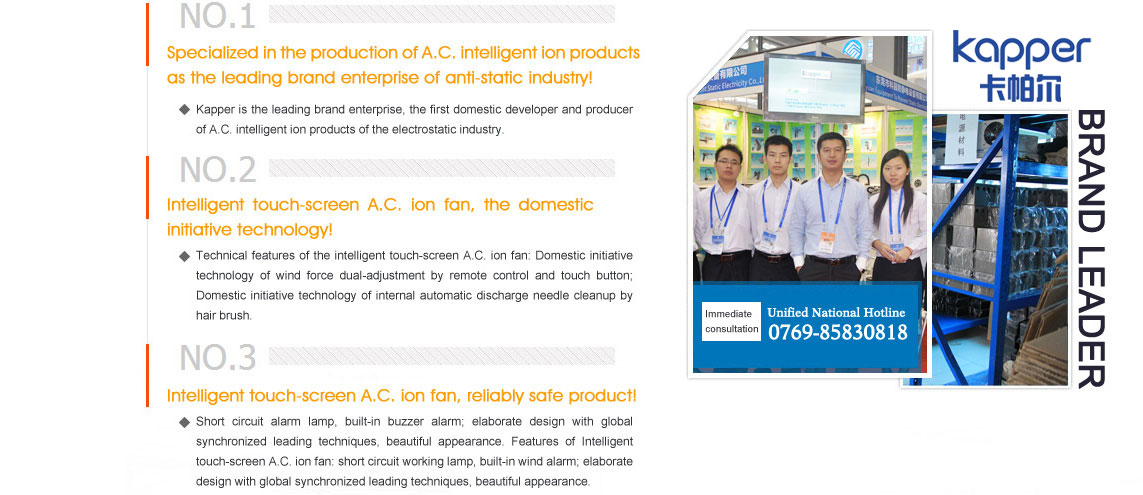 Integrating the product researching, developing, producing, marketing, innovating and servicing, as a comprehensive leading enterprise of anti-static technology, Kapper International is the first domestic developer and producer of the remote control intelligent ion fan. Company's products have been certified by CE, ROHS and third-party technical service institutes of high-quality test.Company has obtained over 30 patents including the product design patents......