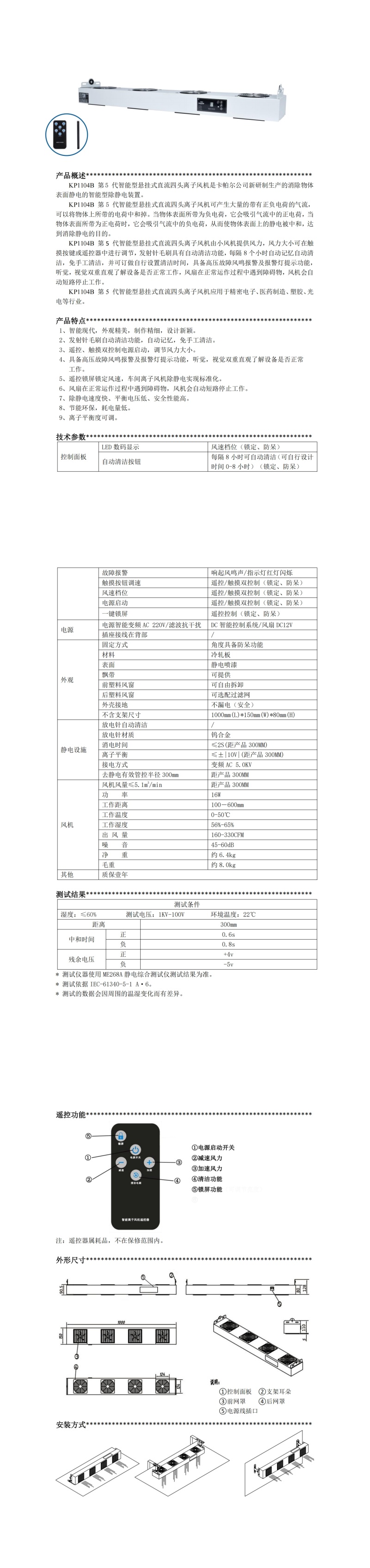 KP1104B 第 5 代智能型懸掛式直流四頭離子風機