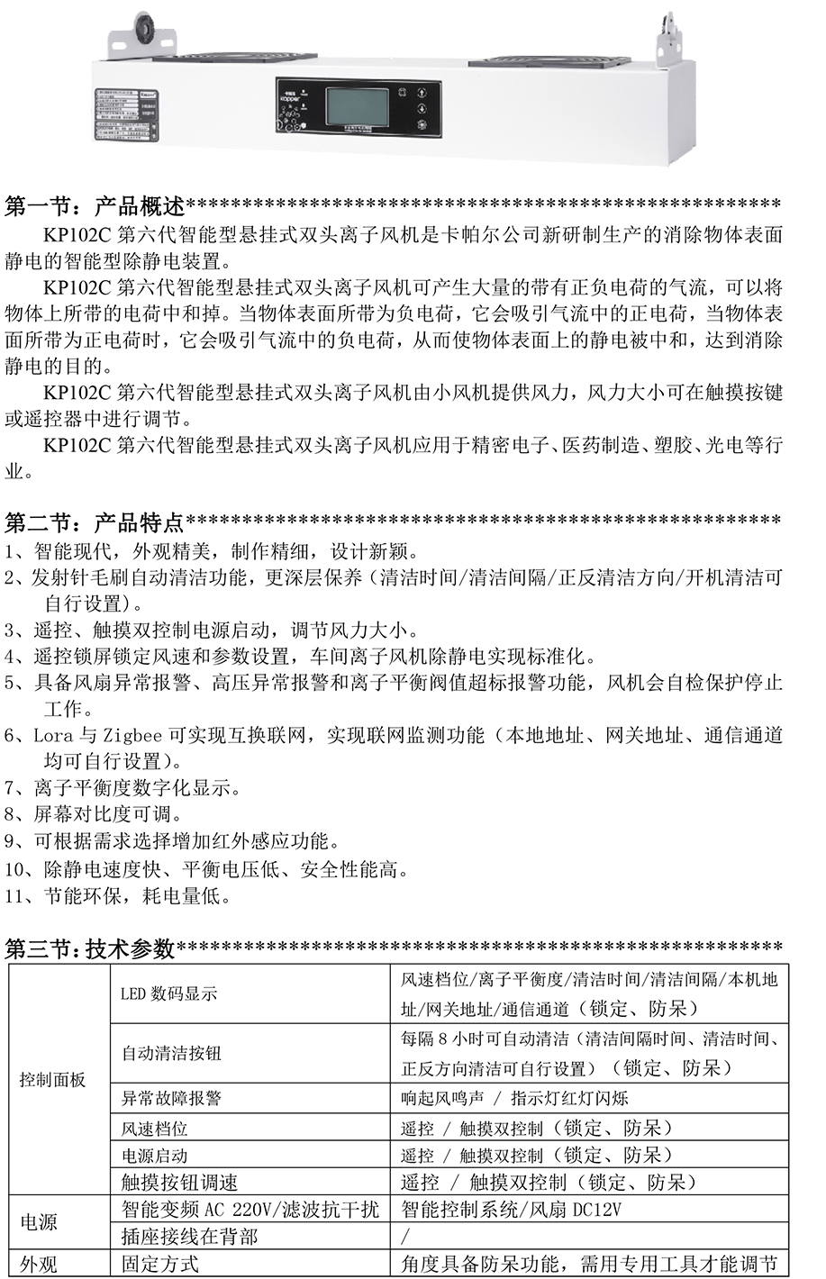 KP102C第六代智能型懸掛式雙頭離子風(fēng)機(jī)