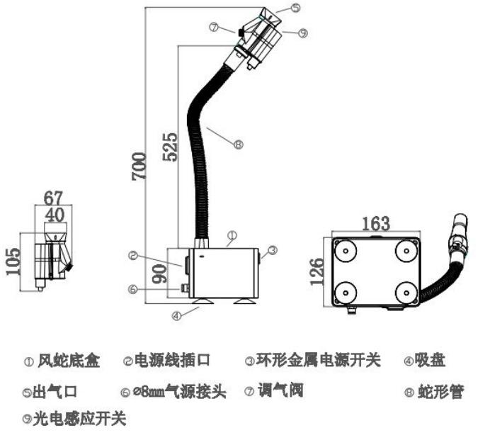 7、電源與蛇身采用一體化設(shè)計,節(jié)省空間。