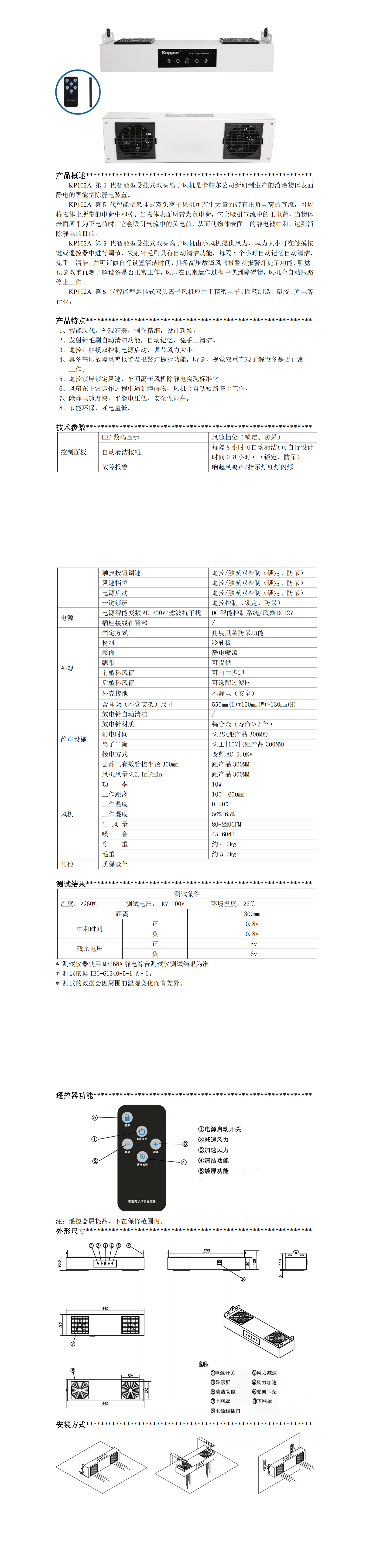 KP102A第五代智能型懸掛式雙頭離子風(fēng)機(jī)