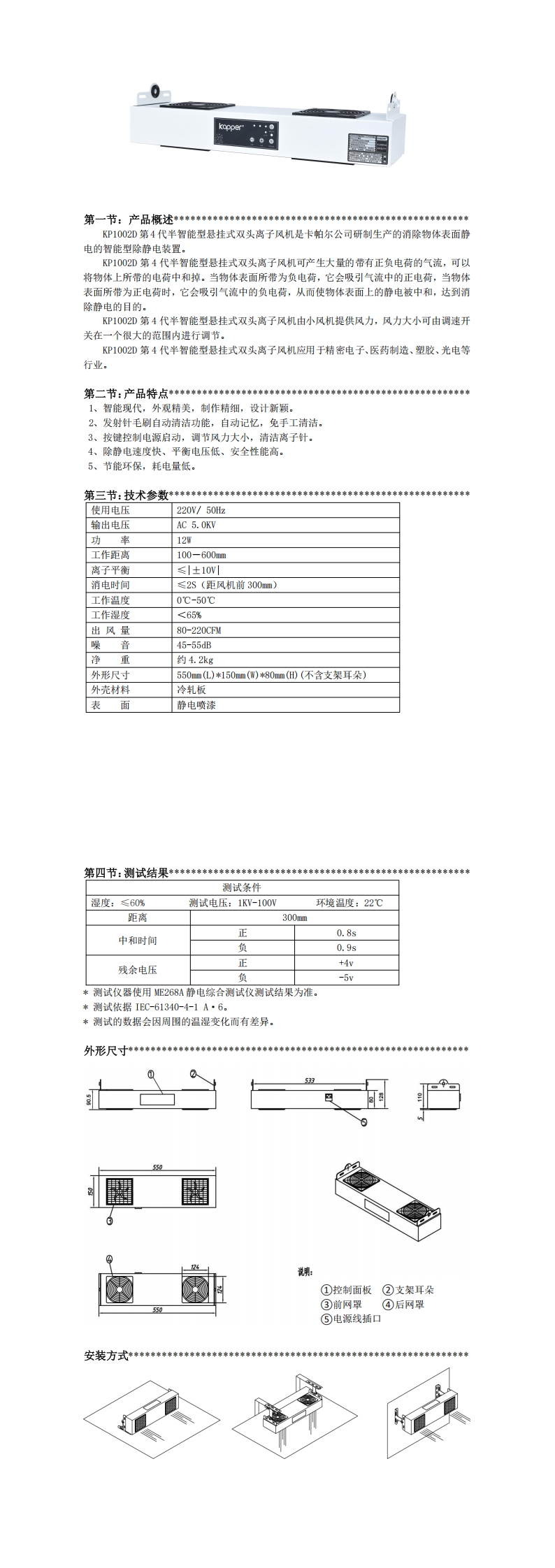 KP1002D第4代半智能型懸掛式雙頭離子風(fēng)機(jī)