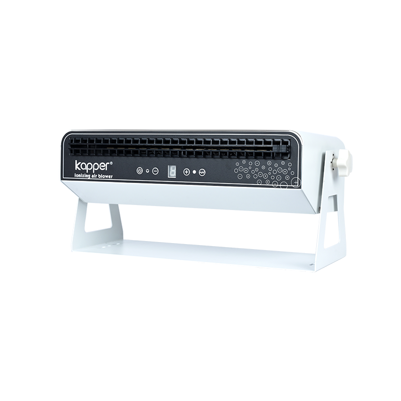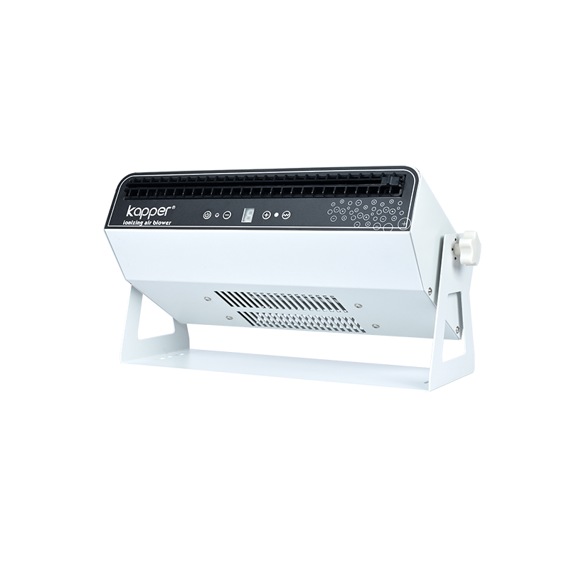 KP104B第5代智能型臥式離子風(fēng)機(jī)可產(chǎn)生大量的帶有正負(fù)電荷的氣流,可以將物體上所帶的電荷中和掉。當(dāng)物體表面所帶為負(fù)電荷,它會(huì)吸引氣流中的正電荷,當(dāng)物體表面所帶為正電荷時(shí),它會(huì)吸引氣流中的負(fù)電荷,從而使物體表面上的靜電被中和,達(dá)到消除靜電的目的。