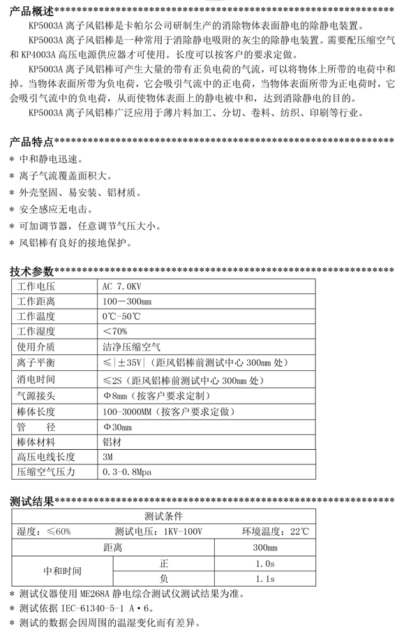 KP5003A第三代離子風(fēng)鋁棒