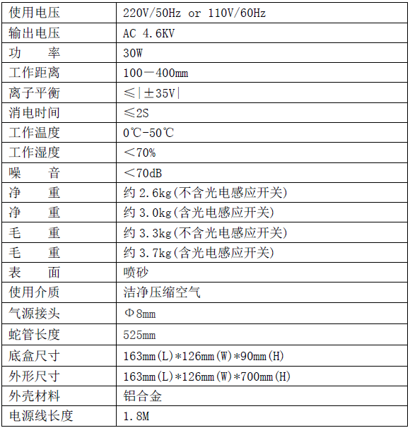5、中和靜電迅速,平衡電壓低,安全性能高。
