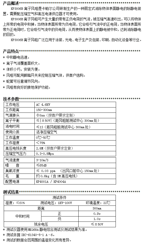 KP3006B第三代蛇扇型離子風(fēng)咀