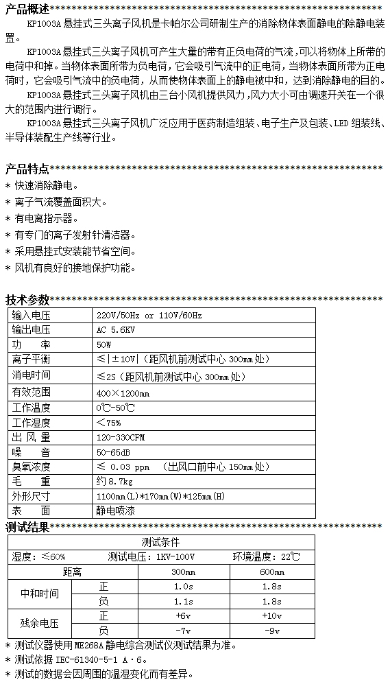 KP1003A第三代懸掛式三頭離子風(fēng)機(jī)