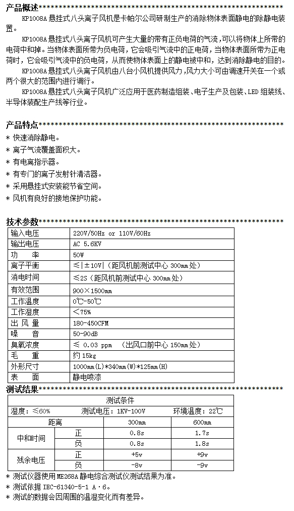 KP1008A第三代懸掛式八頭離子風機