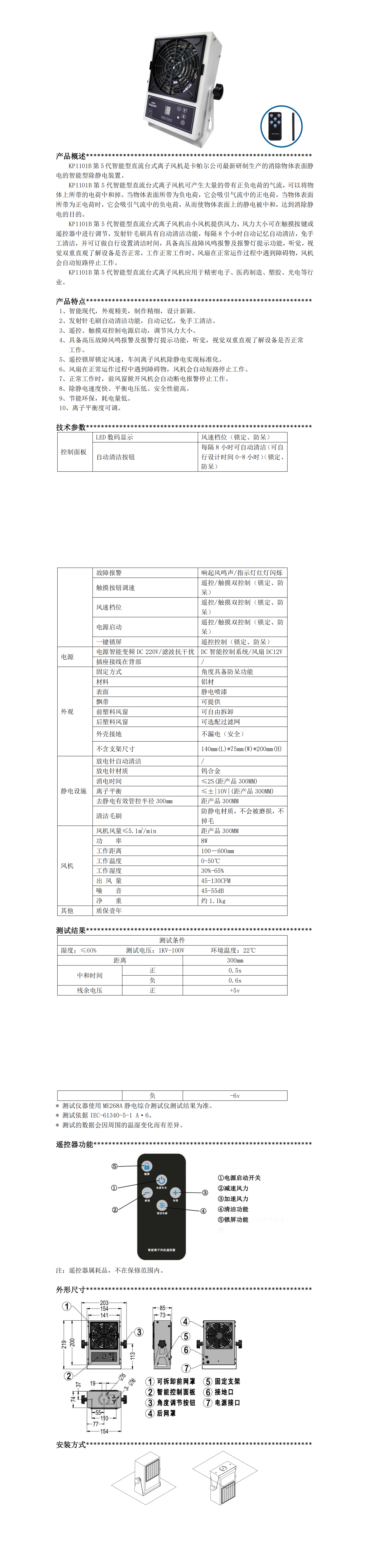 KP1101B 第 5 代智能型直流臺式離子風(fēng)機(jī)